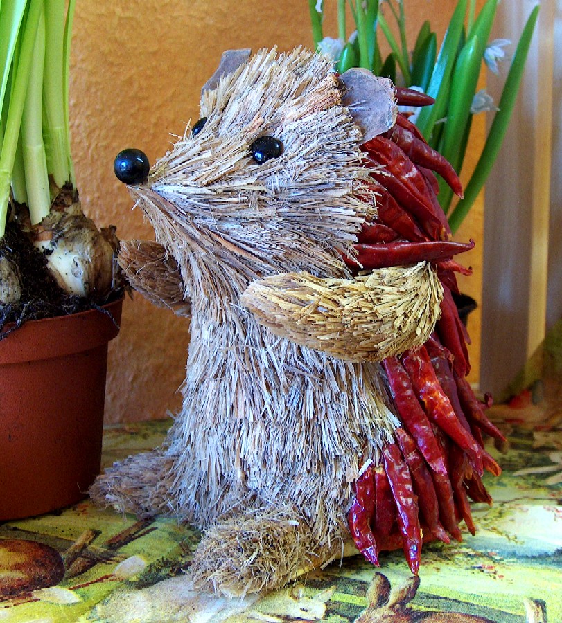 | Igel Rosso aus Stroh und Peperoni, 19cm hoch |