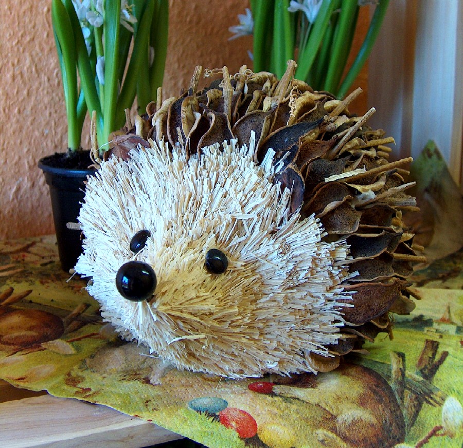 | Igel David aus Stroh und Holz, 15cm lang,18 cm hoch |