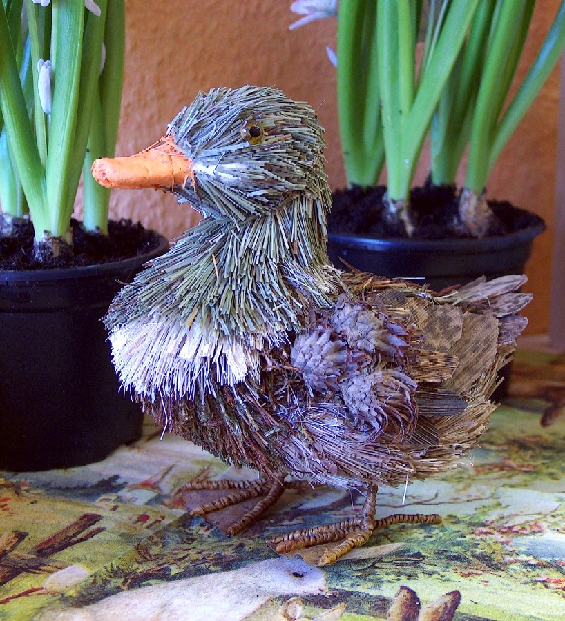 Ente Dolores, 13cm hoch aus Stroh und Holz gefertigt