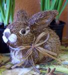 Hase Felix hockend, aus Stroh, 12cm hoch, 16 cm lang