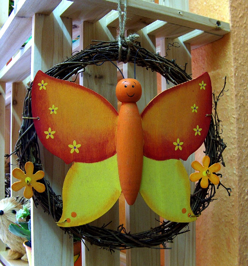 Türkranz aus Weide mit Schmetterling aus Holz rot-orange Durchmesser: 20 cm