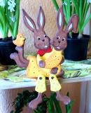 Hasenpaar sitzend, aus Holz, rot-orange, 20 cm hoch